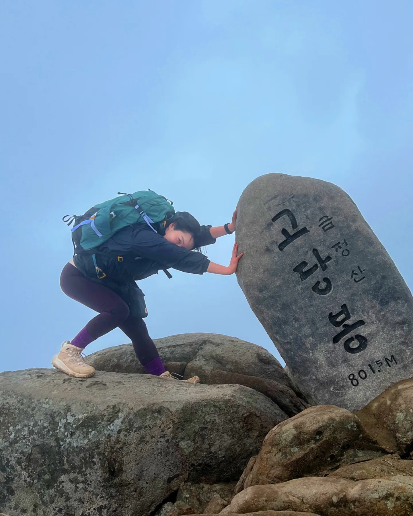 요렇게 정상석 옆 지형지물 이용해서 재밌는 사진도 찍고요